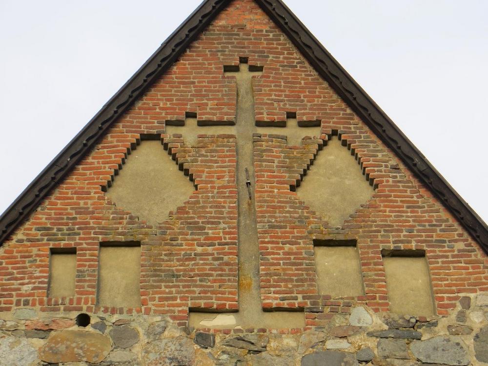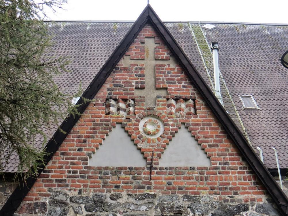 The brick decoration in this wall is cruder than elsewhere in the church. It is believed that this wall was made by a different builder than the other walls.