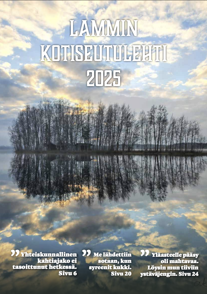 Lammilla on jälleen tapahtunut ja tapahtuu. Kuluvan vuoden ja viime syksyn tärkeät tapahtumat ja ilmiöt, mielenkiintoiset ihmiset ja tarinat paketoi jälleen yhdeksi lukupaketiksi Lammin Kotiseutulehti...